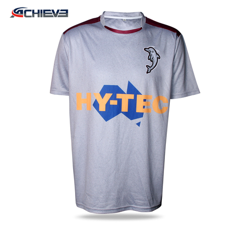 Tùy chỉnh thực hiện ngắn tay áo bóng đá Jersey cộng với kích thước thoáng khí nhanh chóng khô cho người lớn Thư Phong Cách OEM dịch vụ với cá heo thiết kế